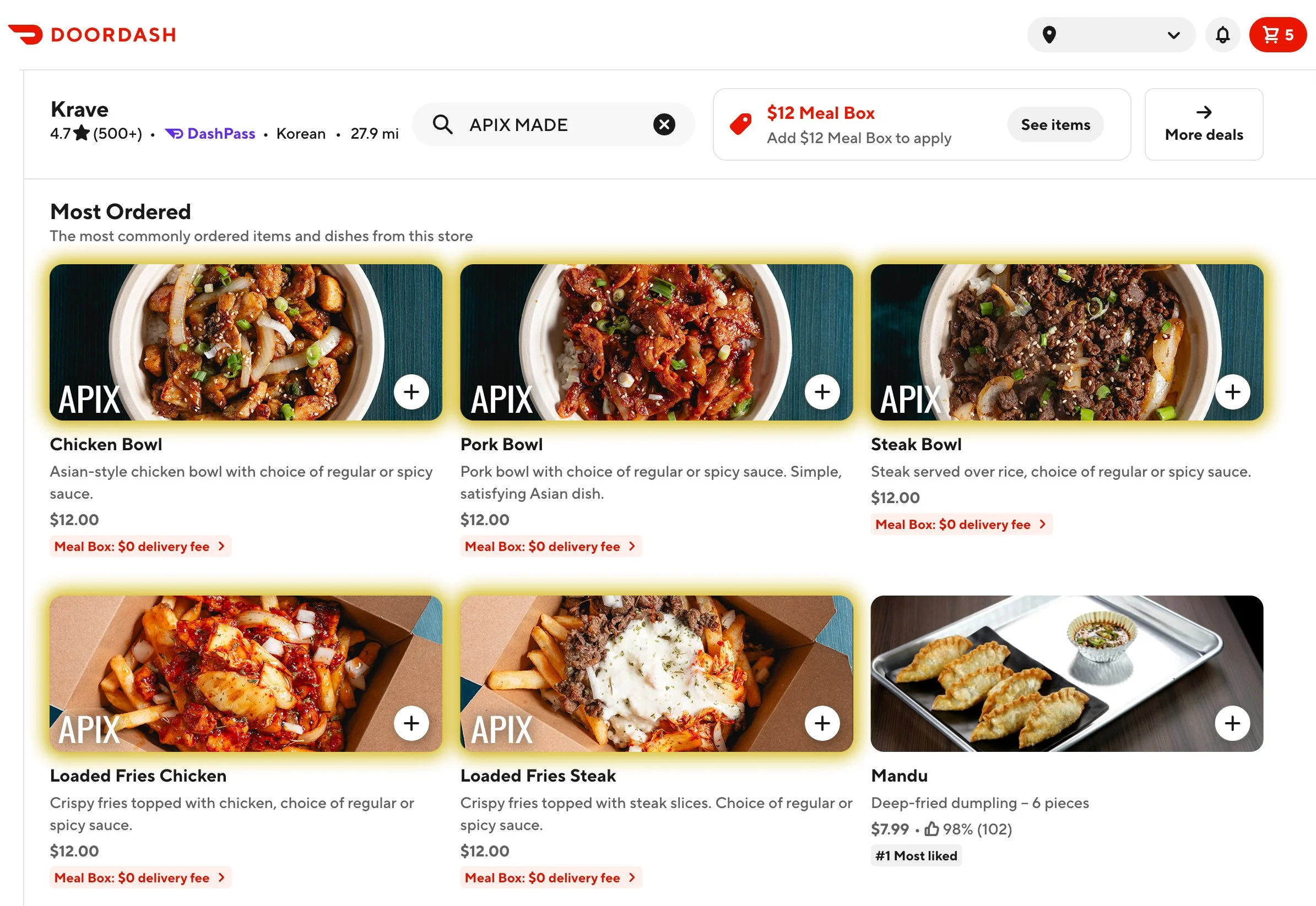 Five of Krave’s six most-ordered DoorDash items now feature Apix photos.